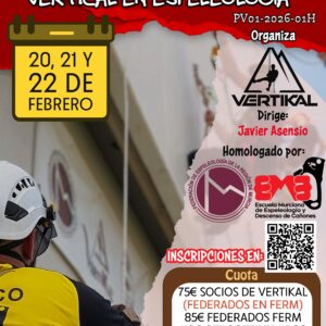 CURSO INICIACIÓN A LAS TÉCNICAS DE PROGRESIÓN VERTICAL EN ESPELEOLOGÍA CURSO DE INICIACIÓN A LAS TÉCNICAS DE PROGRESIÓN VERTICAL EN ESPELEOLOGÍA 20, 21 y 22 de Febrero de 2026 24 HORAS PRESENTACIÓN El Curso de […] 20 - 22 Feb All Day